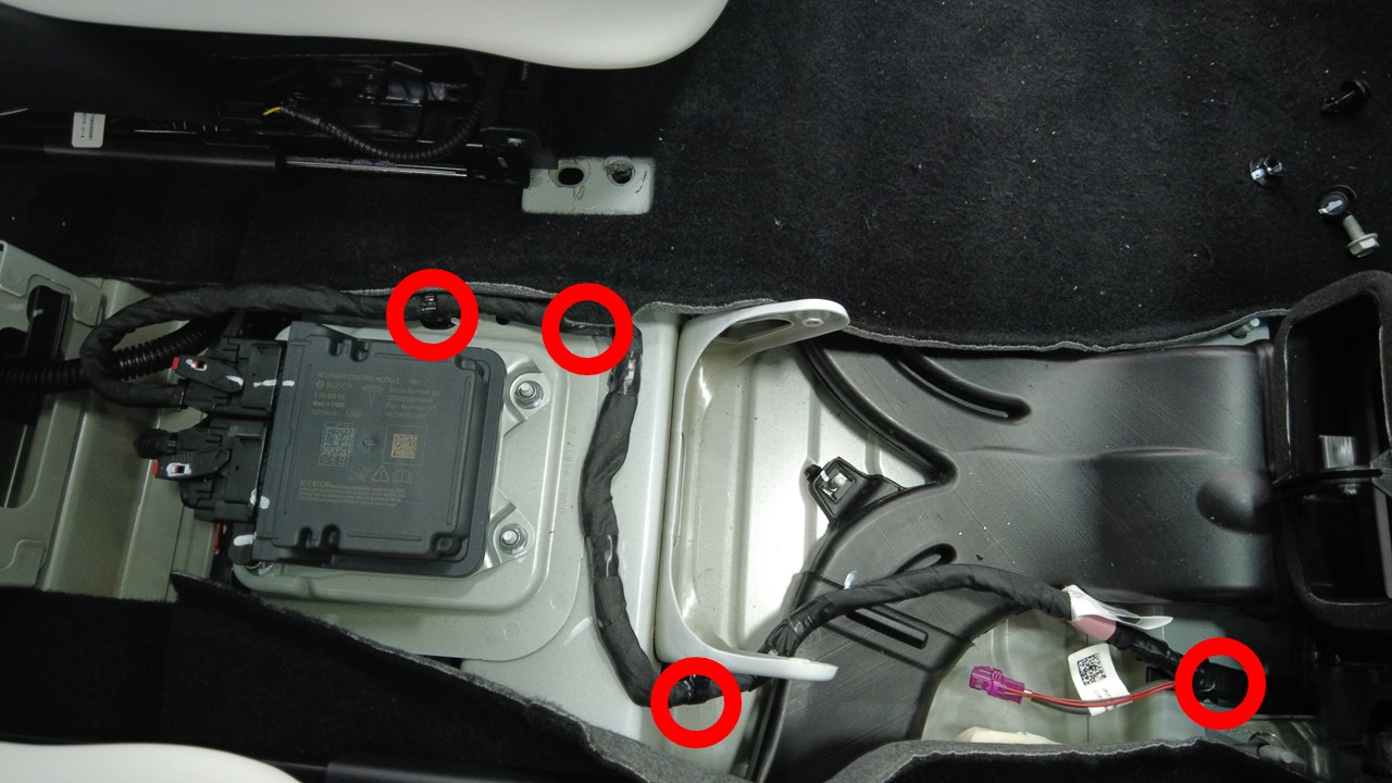harness clips (x3) and harness holder from the top of the cross car beam,