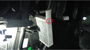 Install the upper filter into the filter housing, with the arrows pointing to the rear of the vehicle, and then fold the filter tabs inward.