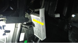 Install the lower filter into the filter housing, with the arrows pointing to the rear of the vehicle.