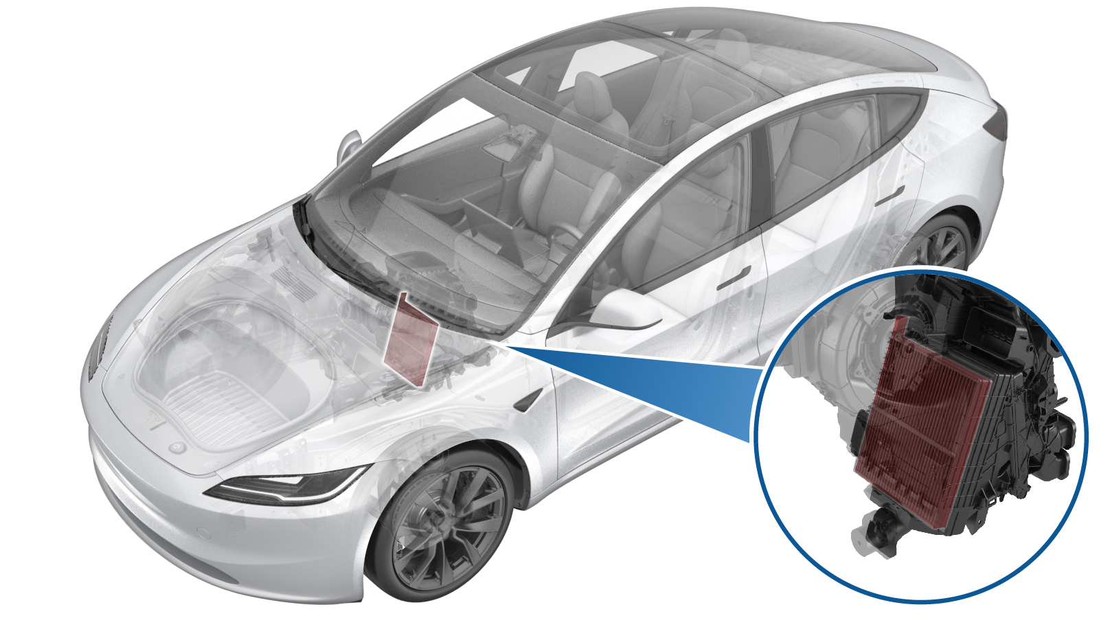 Figure 1. Reset cabin filter health score for 2024+ Model 3—Model Y shown; Model 3 similar