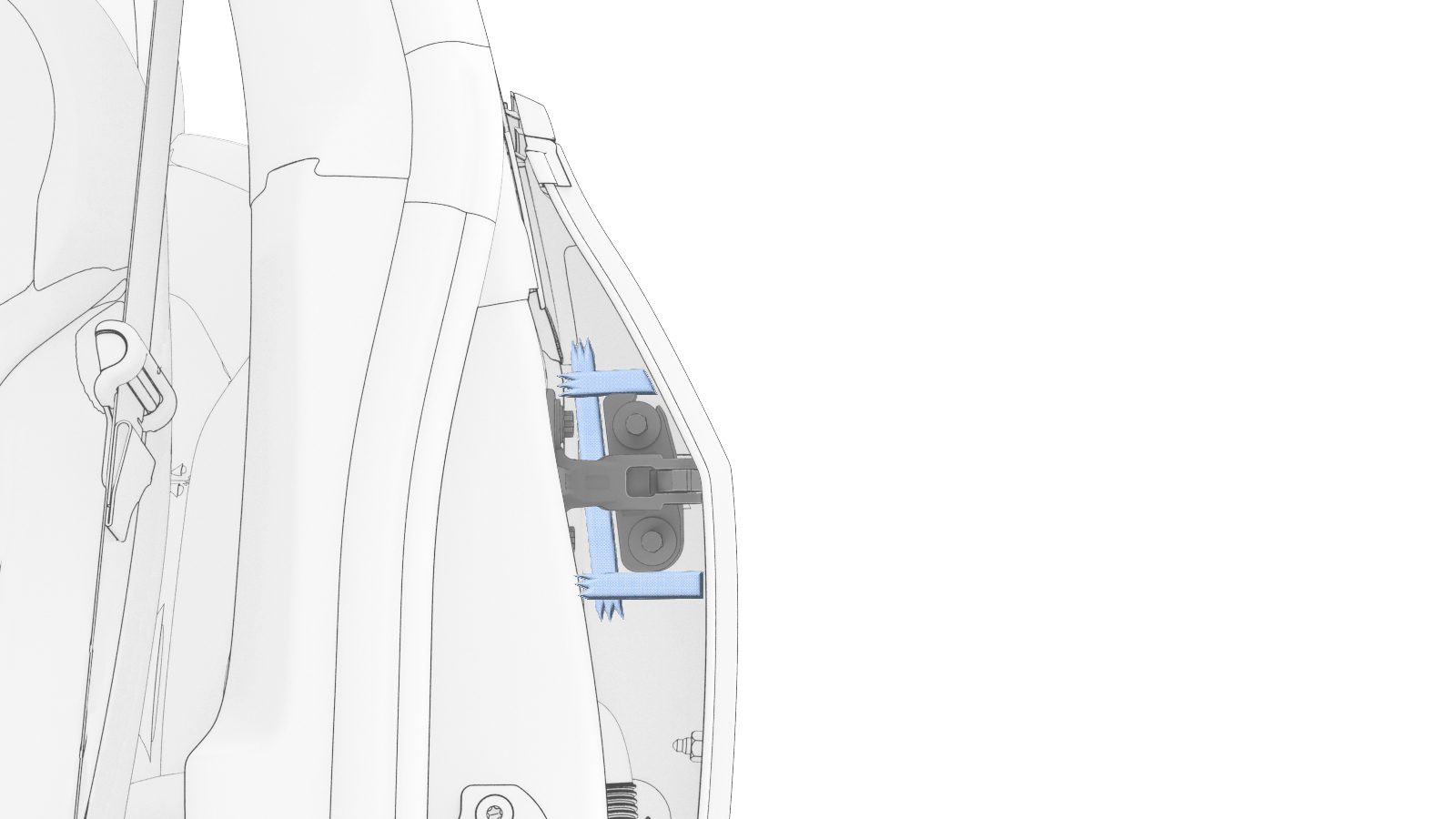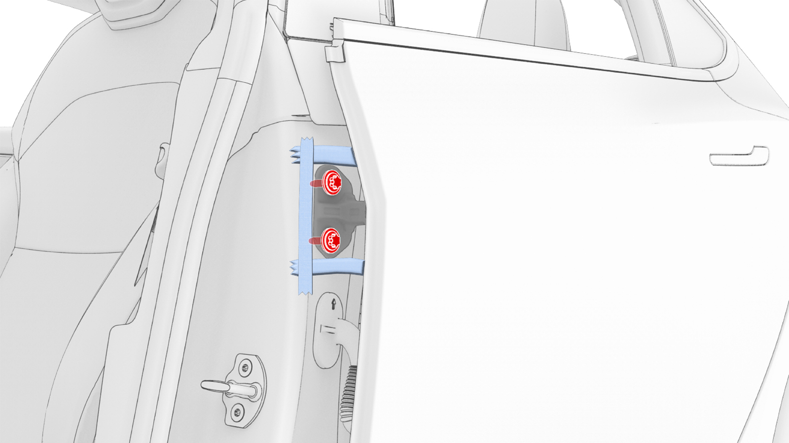 LH rear door upper hinge onto the door, and then hand tighten the bolts (x2) that attach
