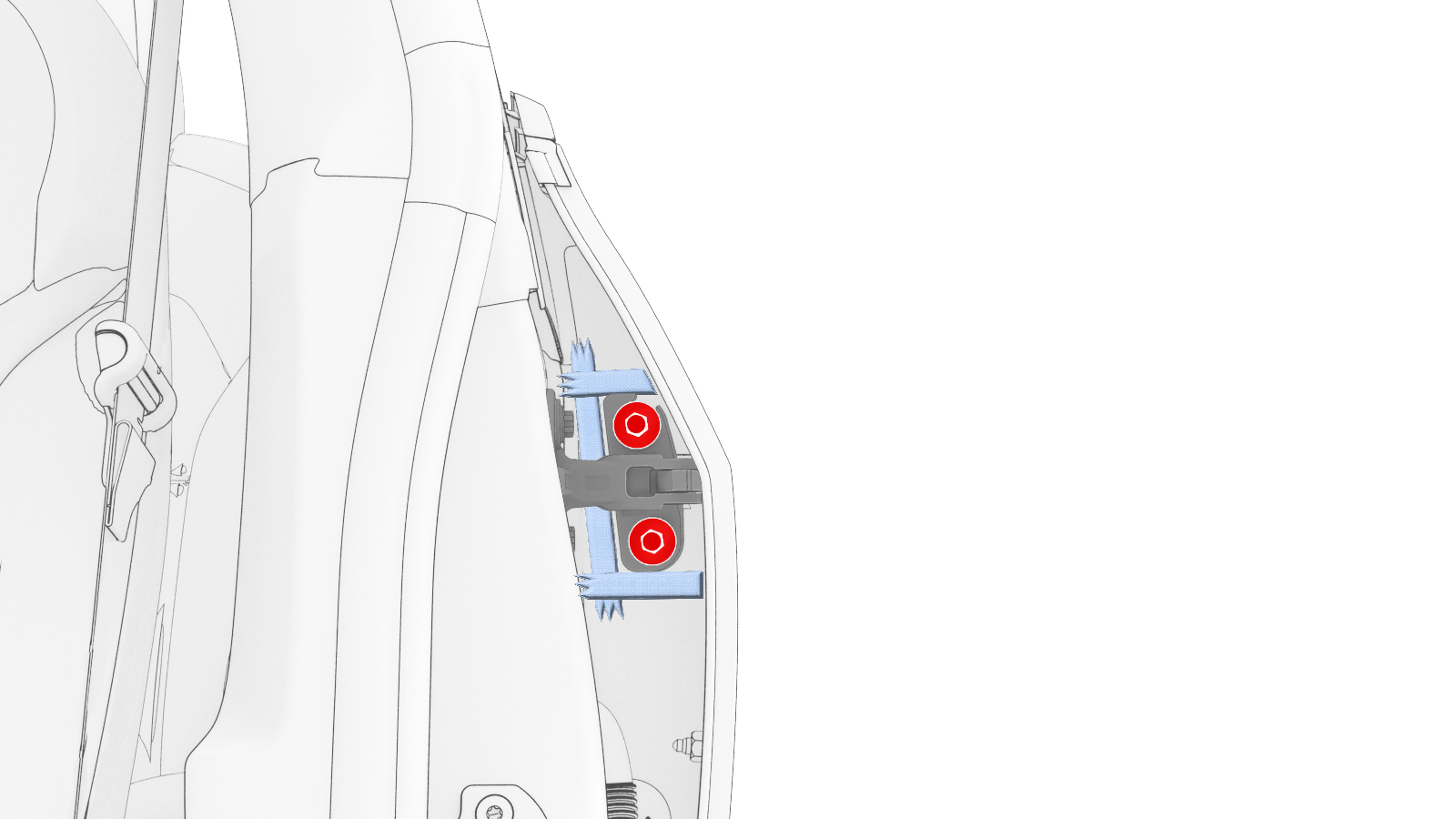Bolts (x2) that attach the LH rear upper door hinge to the door |