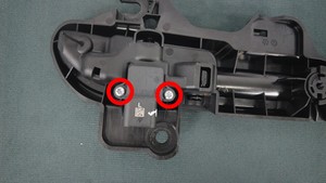 Screws that attach the hall sensor to the LH door exterior release handle |