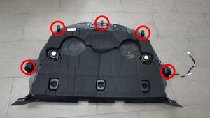 Remove the bolts (x4) that secure the LH woofer, and then remove the woofer