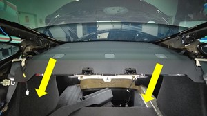 Remove the package tray harness clips (x2) around the C-pillar area.
