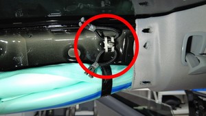 Install the package tray harness clips (x2) around the C-pillar area.