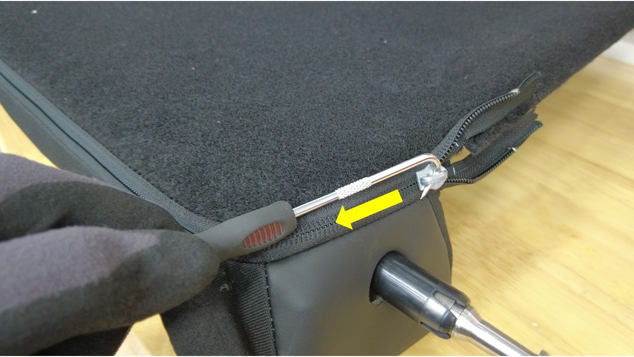 Turn over the 2nd row LH seat back assembly and then unzip the seat back