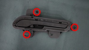 Enlarge the handle mounting holes (x3) to 10mm diameter.
