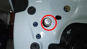 Hand-tighten the bolts (x4) that attach the hinges to the LH front
