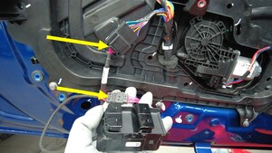 Connect a window switch special tool (1454796-00-A) to the LH front door