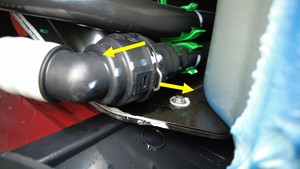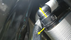 Release the clips (x3) to remove the rear drive unit coolant outlet hose from the