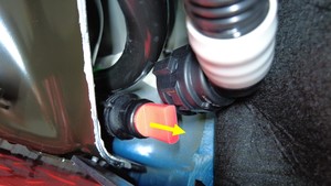 - Remove the coolant drain container from underneath the RH rear of the vehicle.