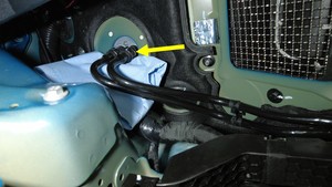Release the clips (x2) that attach the motor bay noise absorber to the