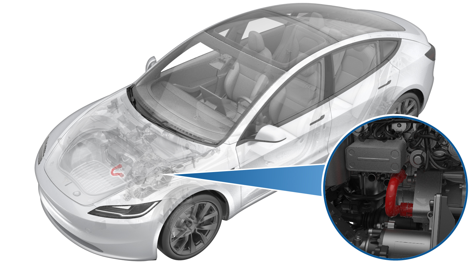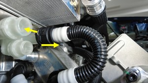 the front drive unit heat exchanger, and then plug the hose and the heat