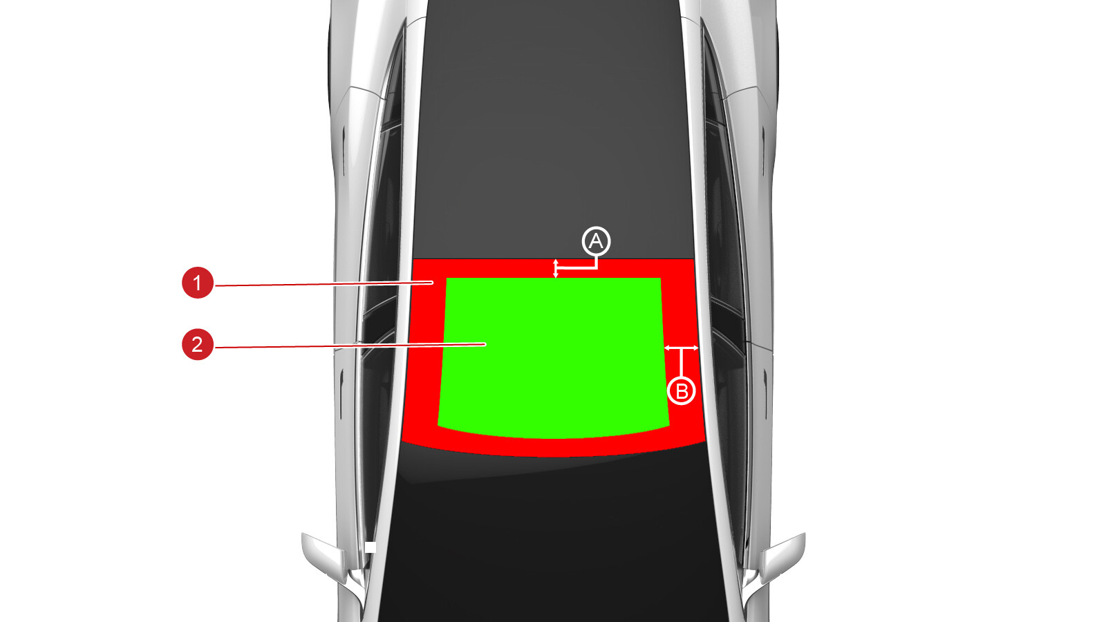 Repairs allowed in area 1: None; if the roof glass is damaged in this area, it must be replaced. |