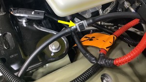 Release the clip that attaches the washer hose to the cowl screen
