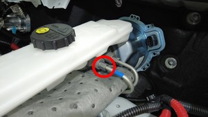 - Install the brake reservoir cap, and then remove the absorbent material from underneath the brake booster and the reservoir area.