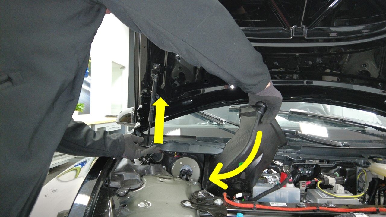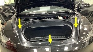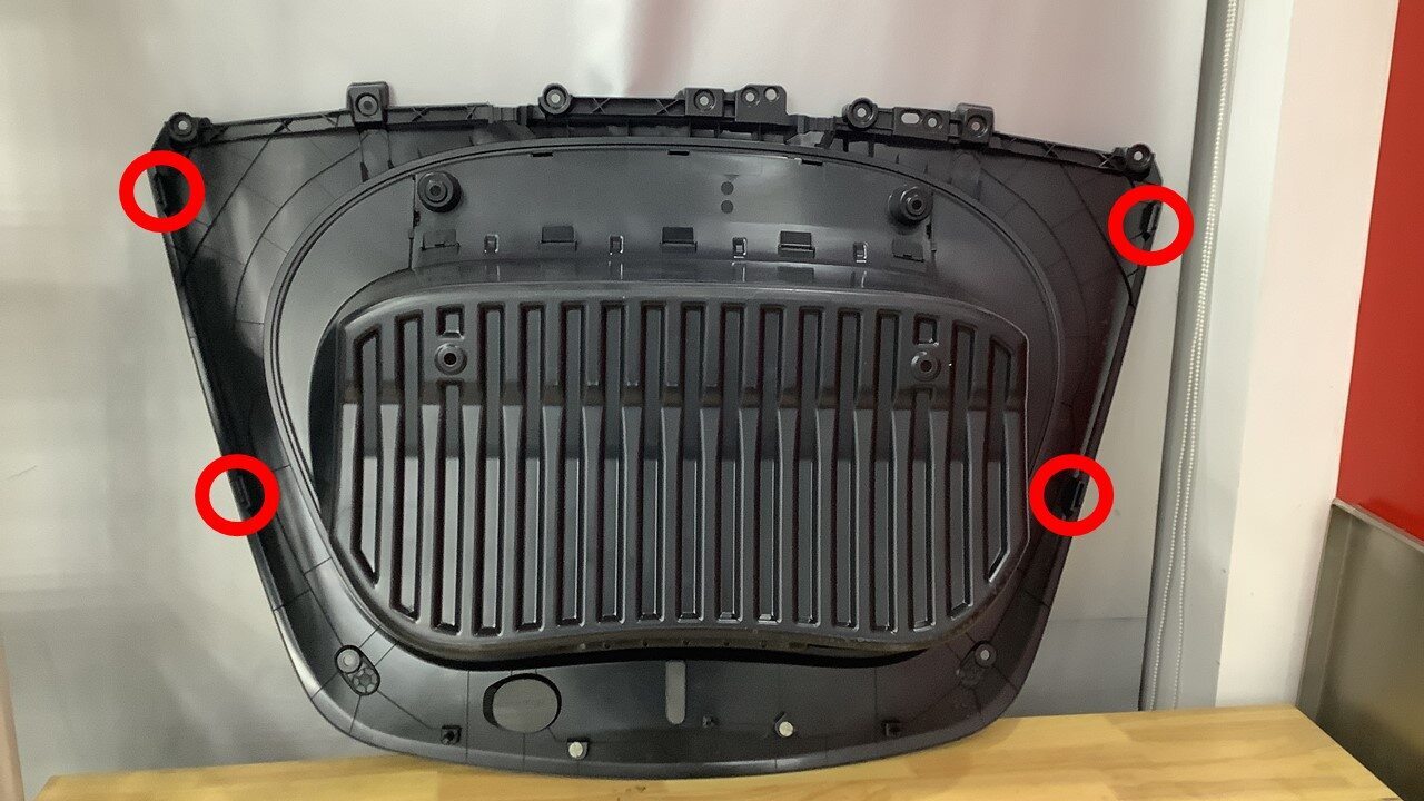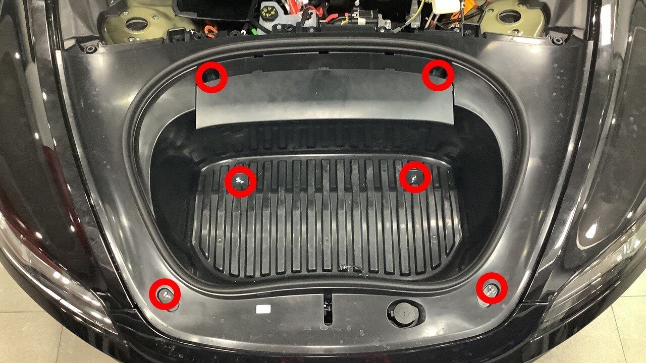 Note14x clips, Hold rear wall of frunk to keep from flexing while engaging front clips.