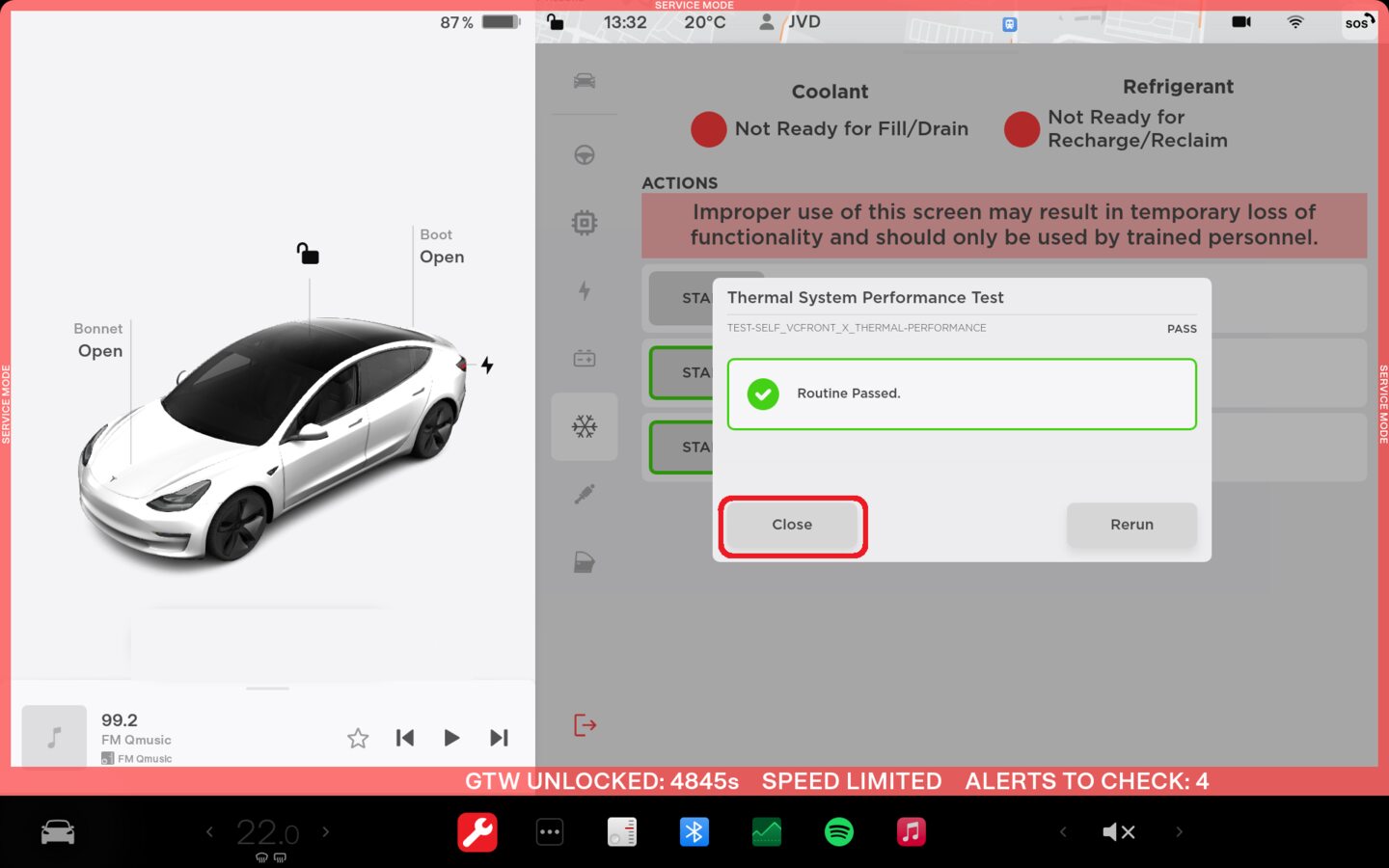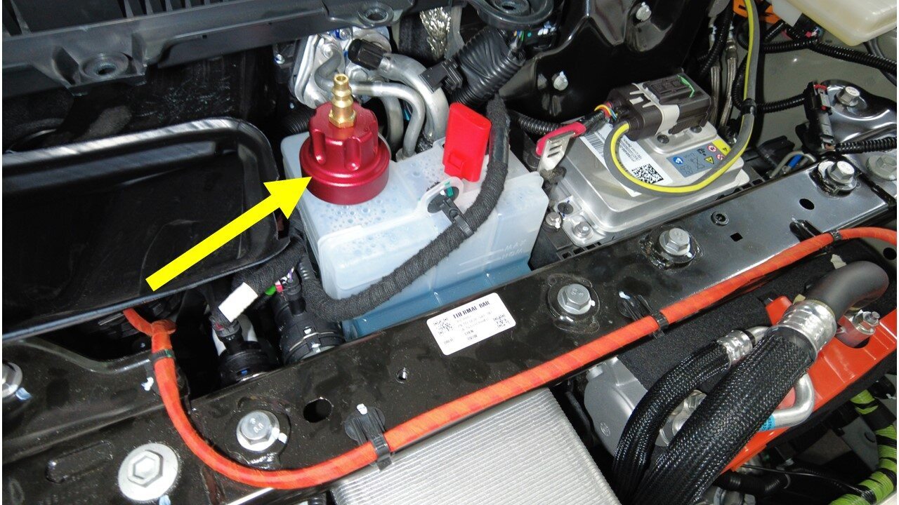NoteWait until coolant pumps stop running (audible noise), Routine Passed will appear, but pumps will run for 10 minutes, If you start next another routine during this time, it will fail, Make sure vehicle is not in "Drive", Routine is still running despite the completed message, Idle speed = ~1500 RPM, Test will vary speeds from 3500-6500 RPM and actuate valves between SERIES and PARALLEL, Putting vehicle into "Drive" will stop this routine, If speeds hover at 7000 RPM, this indicates the pumps are air locked, perform a vacuum fill, Continue to add coolant and purge until the coolant level reaches between the NOM and MAX Lines on the bottle.