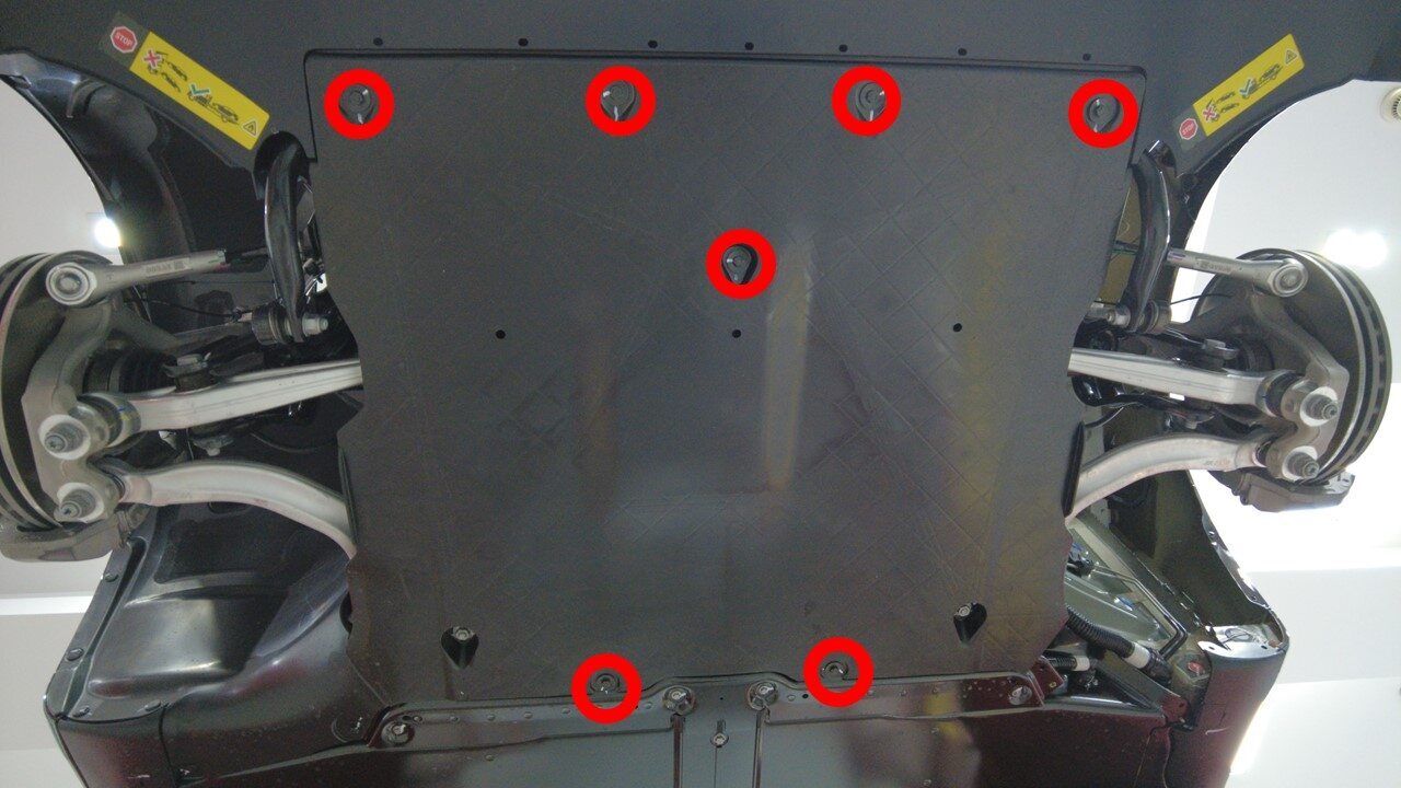 Apply Loctite 222 onto front aero shield bolts and install outer fasteners to front