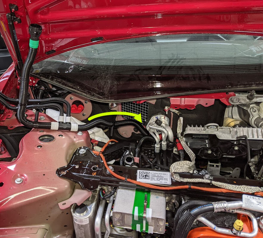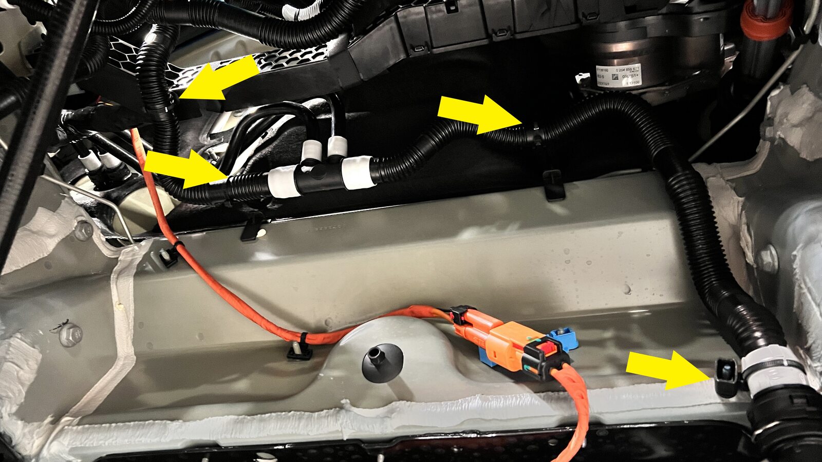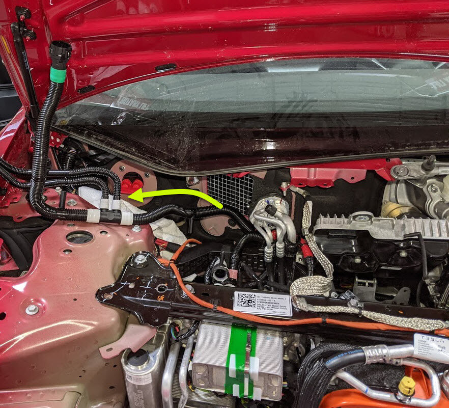 Note3x clips, 1x connector, Frunk safety switch, 3x guide tabs, Align 3x tabs then push forward to secure clips.