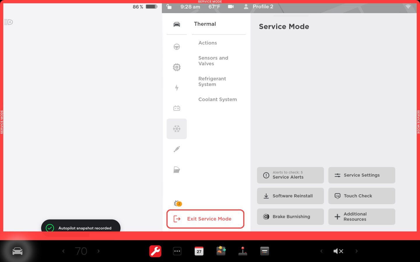 NoteExit Service Mode: Controls > Service Mode > Exit Service Mode, Press and hold to exit.