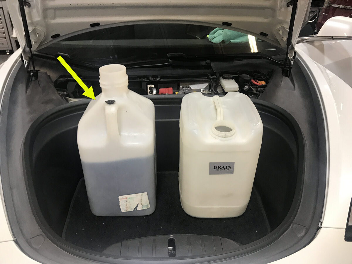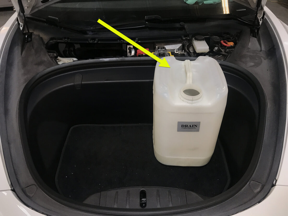 Remove vacuum refill hose from refill cap on coolant bottle.