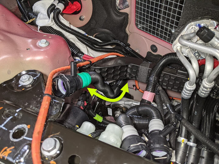 NoteRemove hose from RH side of vehicle, Gently Maneuver hose as needed to clear surrounding objects.