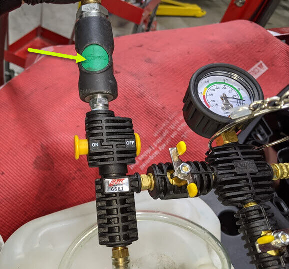 - Reopen the air inlet valve for 3 minutes to continue evacuating cooling system, then close valve.