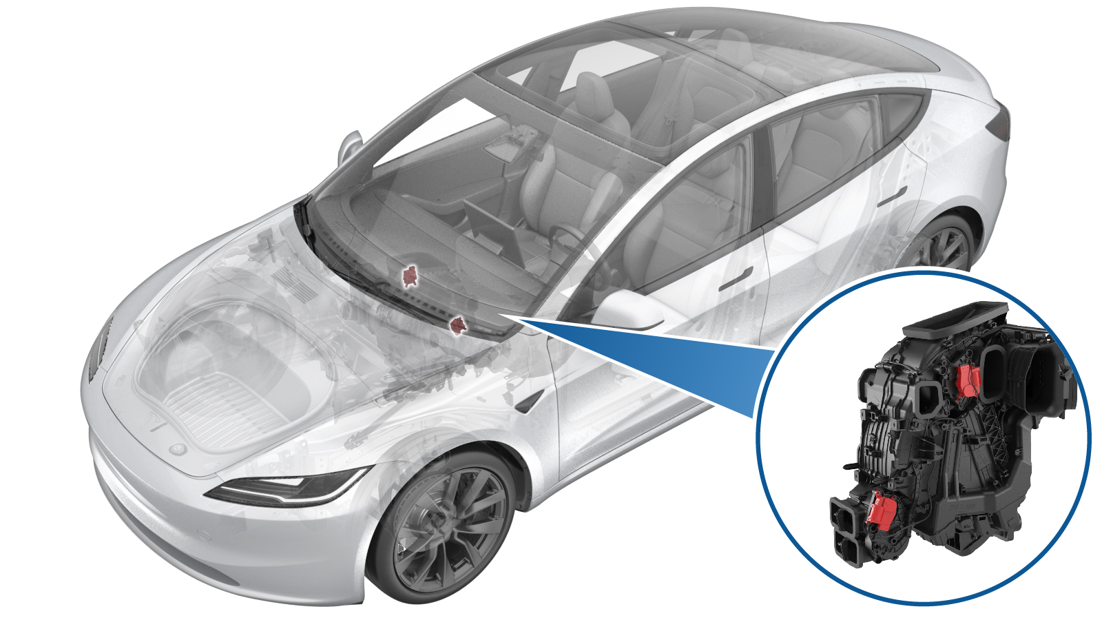 1810 - Cabin HVAC Related links Air Extractor (Remove and Replace) Correction code 1810020022 FRT 0.54 NOTE: Unless otherwise explicitly stated in the procedure, the above correction code and FRT reflect all of the work required to perform this procedure, including the linked procedures. Do not stack correction codes unless explicitly told to do so. NOTE: See Flat Rate Times to learn more about FRTs and how they are created. To provide feedback on FRT values, email ServiceManualFeedback@tesla.com. NOTE: See Personal Protection to make sure wearing proper PPE when performing the below procedure.NOTE: See Ergonomic Precautionsfor safe and healthy working practices. Sensor - Cabin Temperature - Fan Driven (Remove and Replace) Correction code 1810010122 FRT 0.06 NOTE: Unless otherwise explicitly stated in the procedure, the above correction code and FRT reflect all of the work required to perform this procedure, including the linked procedures. Do not stack correction codes unless explicitly told to do so. NOTE: See Flat Rate Times to learn more about FRTs and how they are created. To provide feedback on FRT values, email ServiceManualFeedback@tesla.com. NOTE: See Personal Protection to make sure wearing proper PPE when performing the below procedure.NOTE: See Ergonomic Precautionsfor safe and healthy working practices. Actuator - HVAC (Remove and Replace) Correction code 1810010072 FRT 2.76 NOTE: Unless otherwise explicitly stated in the procedure, the above correction code and FRT reflect all of the work required to perform this procedure, including the linked procedures. Do not stack correction codes unless explicitly told to do so. NOTE: See Flat Rate Times to learn more about FRTs and how they are created. To provide feedback on FRT values, email ServiceManualFeedback@tesla.com. NOTE: See Personal Protection to make sure wearing proper PPE when performing the below procedure.NOTE: See Ergonomic Precautionsfor safe and healthy working practices. Blower Motor - HVAC (Remove and Replace) Correction code 1810010022 FRT 2.46 NOTE: Unless otherwise explicitly stated in the procedure, the above correction code and FRT reflect all of the work required to perform this procedure, including the linked procedures. Do not stack correction codes unless explicitly told to do so. NOTE: See Flat Rate Times to learn more about FRTs and how they are created. To provide feedback on FRT values, email ServiceManualFeedback@tesla.com. NOTE: See Personal Protection to make sure wearing proper PPE when performing the below procedure.NOTE: See Ergonomic Precautionsfor safe and healthy working practices. Combination Filter - HVAC (Remove and Replace) Correction code 1810010032 FRT 0.18 NOTE: Unless otherwise explicitly stated in the procedure, the above correction code and FRT reflect all of the work required to perform this procedure, including the linked procedures. Do not stack correction codes unless explicitly told to do so. NOTE: See Flat Rate Times to learn more about FRTs and how they are created. To provide feedback on FRT values, email ServiceManualFeedback@tesla.com. NOTE: See Personal Protection to make sure wearing proper PPE when performing the below procedure.NOTE: See Ergonomic Precautionsfor safe and healthy working practices. Assembly - Fresh Air Gutter - HVAC (Remove and Replace) Correction code 1810010052 FRT 0.06 NOTE: Unless otherwise explicitly stated in the procedure, the above correction code and FRT reflect all of the work required to perform this procedure, including the linked procedures. Do not stack correction codes unless explicitly told to do so. NOTE: See Flat Rate Times to learn more about FRTs and how they are created. To provide feedback on FRT values, email ServiceManualFeedback@tesla.com. NOTE: See Personal Protection to make sure wearing proper PPE when performing the below procedure.NOTE: See Ergonomic Precautionsfor safe and healthy working practices. Fresh Air Intake - HVAC (Remove and Replace) Correction code 1810010042 FRT 0.18 NOTE: Unless otherwise explicitly stated in the procedure, the above correction code and FRT reflect all of the work required to perform this procedure, including the linked procedures. Do not stack correction codes unless explicitly told to do so. NOTE: See Flat Rate Times to learn more about FRTs and how they are created. To provide feedback on FRT values, email ServiceManualFeedback@tesla.com. NOTE: See Personal Protection to make sure wearing proper PPE when performing the below procedure.NOTE: See Ergonomic Precautionsfor safe and healthy working practices. Harness - HVAC (Remove and Replace) Correction code 1810010062 FRT 2.82 NOTE: Unless otherwise explicitly stated in the procedure, the above correction code and FRT reflect all of the work required to perform this procedure, including the linked procedures. Do not stack correction codes unless explicitly told to do so. NOTE: See Flat Rate Times to learn more about FRTs and how they are created. To provide feedback on FRT values, email ServiceManualFeedback@tesla.com. NOTE: See Personal Protection to make sure wearing proper PPE when performing the below procedure.NOTE: See Ergonomic Precautionsfor safe and healthy working practices. HVAC Assembly (Remove and Replace) Correction code 1810010012 FRT 2.58 NOTE: Unless otherwise explicitly stated in the procedure, the above correction code and FRT reflect all of the work required to perform this procedure, including the linked procedures. Do not stack correction codes unless explicitly told to do so. NOTE: See Flat Rate Times to learn more about FRTs and how they are created. To provide feedback on FRT values, email ServiceManualFeedback@tesla.com. NOTE: See Personal Protection to make sure wearing proper PPE when performing the below procedure.NOTE: See Ergonomic Precautionsfor safe and healthy working practices. NVH Seal - HVAC (Remove and Replace) Correction code 1810010112 FRT 2.58 NOTE: Unless otherwise explicitly stated in the procedure