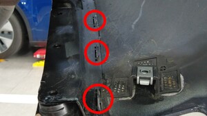 Bolts (x6) that attach the rear fascia diffuser to the outer edge of the rear fascia |