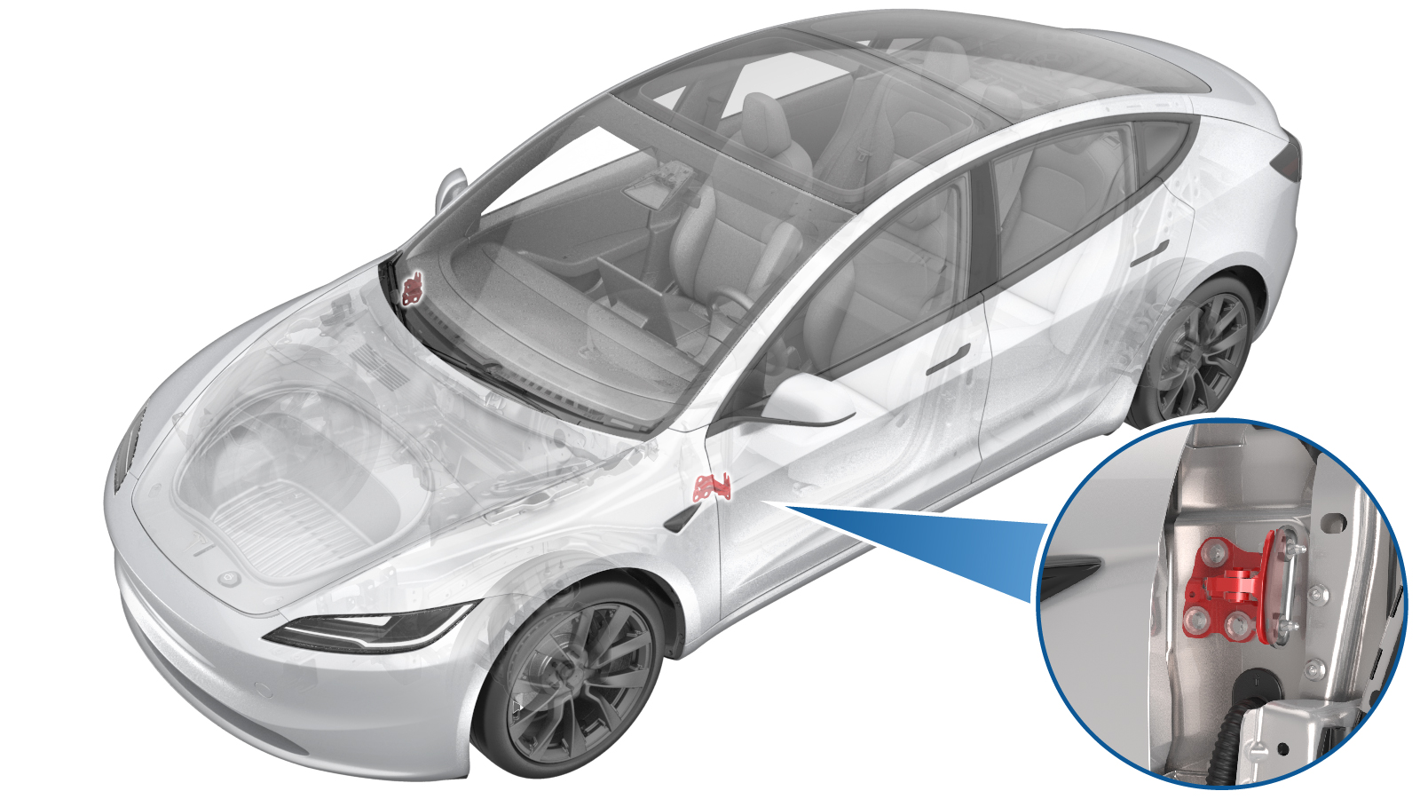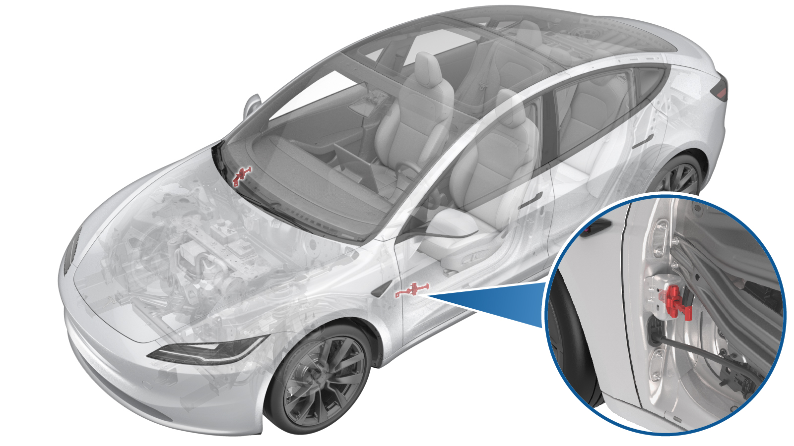 1133 - Closure Assist Mechanisms and Hinges Related links Bracket - Hood Strut - RH (Remove and Replace) Correction code 1133030032 FRT 0.42 NOTE: Unless otherwise explicitly stated in the procedure, the above correction code and FRT reflect all of the work required to perform this procedure, including the linked procedures. Do not stack correction codes unless explicitly told to do so. NOTE: See Flat Rate Times to learn more about FRTs and how they are created. To provide feedback on FRT values, email ServiceManualFeedback@tesla.com. NOTE: See Personal Protection to make sure wearing proper PPE when performing the below procedure.NOTE: See Ergonomic Precautionsfor safe and healthy working practices. Bump Stop - Liftgate (Remove and Replace) Correction code 1133070012 FRT 0.06 NOTE: Unless otherwise explicitly stated in the procedure, the above correction code and FRT reflect all of the work required to perform this procedure, including the linked procedures. Do not stack correction codes unless explicitly told to do so. NOTE: See Flat Rate Times to learn more about FRTs and how they are created. To provide feedback on FRT values, email ServiceManualFeedback@tesla.com. NOTE: See Personal Protection to make sure wearing proper PPE when performing the below procedure.NOTE: See Ergonomic Precautionsfor safe and healthy working practices. Bump Stop - Overslam - Liftgate (Remove and Replace) Correction code 1133070042 FRT 0.06 NOTE: Unless otherwise explicitly stated in the procedure, the above correction code and FRT reflect all of the work required to perform this procedure, including the linked procedures. Do not stack correction codes unless explicitly told to do so. NOTE: See Flat Rate Times to learn more about FRTs and how they are created. To provide feedback on FRT values, email ServiceManualFeedback@tesla.com. NOTE: See Personal Protection to make sure wearing proper PPE when performing the below procedure.NOTE: See Ergonomic Precautionsfor safe and healthy working practices. Check Strap - Door - Front - LH (Remove and Replace) Correction code 1133010012 FRT 0.30 NOTE: Unless otherwise explicitly stated in the procedure, the above correction code and FRT reflect all of the work required to perform this procedure, including the linked procedures. Do not stack correction codes unless explicitly told to do so. NOTE: See Flat Rate Times to learn more about FRTs and how they are created. To provide feedback on FRT values, email ServiceManualFeedback@tesla.com. NOTE: See Personal Protection to make sure wearing proper PPE when performing the below procedure.NOTE: See Ergonomic Precautionsfor safe and healthy working practices. Check Strap - Door - Rear (Remove and Replace) Correction code 1133050012 FRT 0.54 NOTE: Unless otherwise explicitly stated in the procedure, the above correction code and FRT reflect all of the work required to perform this procedure, including the linked procedures. Do not stack correction codes unless explicitly told to do so. NOTE: See Flat Rate Times to learn more about FRTs and how they are created. To provide feedback on FRT values, email ServiceManualFeedback@tesla.com. NOTE: See Personal Protection to make sure wearing proper PPE when performing the below procedure.NOTE: See Ergonomic Precautionsfor safe and healthy working practices. Closeout Panel - Door - Front - LH (Remove and Replace) Correction code 1133010042 FRT 0.36 NOTE: Unless otherwise explicitly stated in the procedure, the above correction code and FRT reflect all of the work required to perform this procedure, including the linked procedures. Do not stack correction codes unless explicitly told to do so. NOTE: See Flat Rate Times to learn more about FRTs and how they are created. To provide feedback on FRT values, email ServiceManualFeedback@tesla.com. NOTE: See Personal Protection to make sure wearing proper PPE when performing the below procedure.NOTE: See Ergonomic Precautionsfor safe and healthy working practices. Cover - Hood Hinge - LH (Remove and Replace) Correction code 1133030012 FRT 0.06 NOTE: Unless otherwise explicitly stated in the procedure, the above correction code and FRT reflect all of the work required to perform this procedure, including the linked procedures. Do not stack correction codes unless explicitly told to do so. NOTE: See Flat Rate Times to learn more about FRTs and how they are created. To provide feedback on FRT values, email ServiceManualFeedback@tesla.com. NOTE: See Personal Protection to make sure wearing proper PPE when performing the below procedure.NOTE: See Ergonomic Precautionsfor safe and healthy working practices. Gas Strut - Hood (Remove and Replace) Correction code 1133030062 FRT 0.06 NOTE: Unless otherwise explicitly stated in the procedure, the above correction code and FRT reflect all of the work required to perform this procedure, including the linked procedures. Do not stack correction codes unless explicitly told to do so. NOTE: See Flat Rate Times to learn more about FRTs and how they are created. To provide feedback on FRT values, email ServiceManualFeedback@tesla.com. NOTE: See Personal Protection to make sure wearing proper PPE when performing the below procedure.NOTE: See Ergonomic Precautionsfor safe and healthy working practices. Hinge - Active Hood - LH (Remove and Replace) Correction code 1133030072 FRT 0.72 NOTE: Unless otherwise explicitly stated in the procedure, the above correction code and FRT reflect all of the work required to perform this procedure, including the linked procedures. Do not stack correction codes unless explicitly told to do so. NOTE: See Flat Rate Times to learn more about FRTs and how they are created. To provide feedback on FRT values, email ServiceManualFeedback@tesla.com. NOTE: See Personal Protection to make sure wearing proper PPE when performing the below procedure.NOTE: See Ergonomic Precautionsfor safe and healthy working practices. Hinge - Door - Front - Lower - LH (Remove and Replace) Correction code