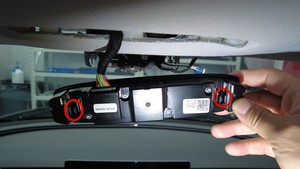 - Release the clips (x4) that attach the front of the headliner to the vehicle to lower it.