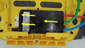 - Slide the ECU to engage the underside guide tabs (x3) to install the lumbar ECU to the power lumbar assembly.
