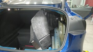 Fold the RH trunk side trim aside to provide access to the working area.