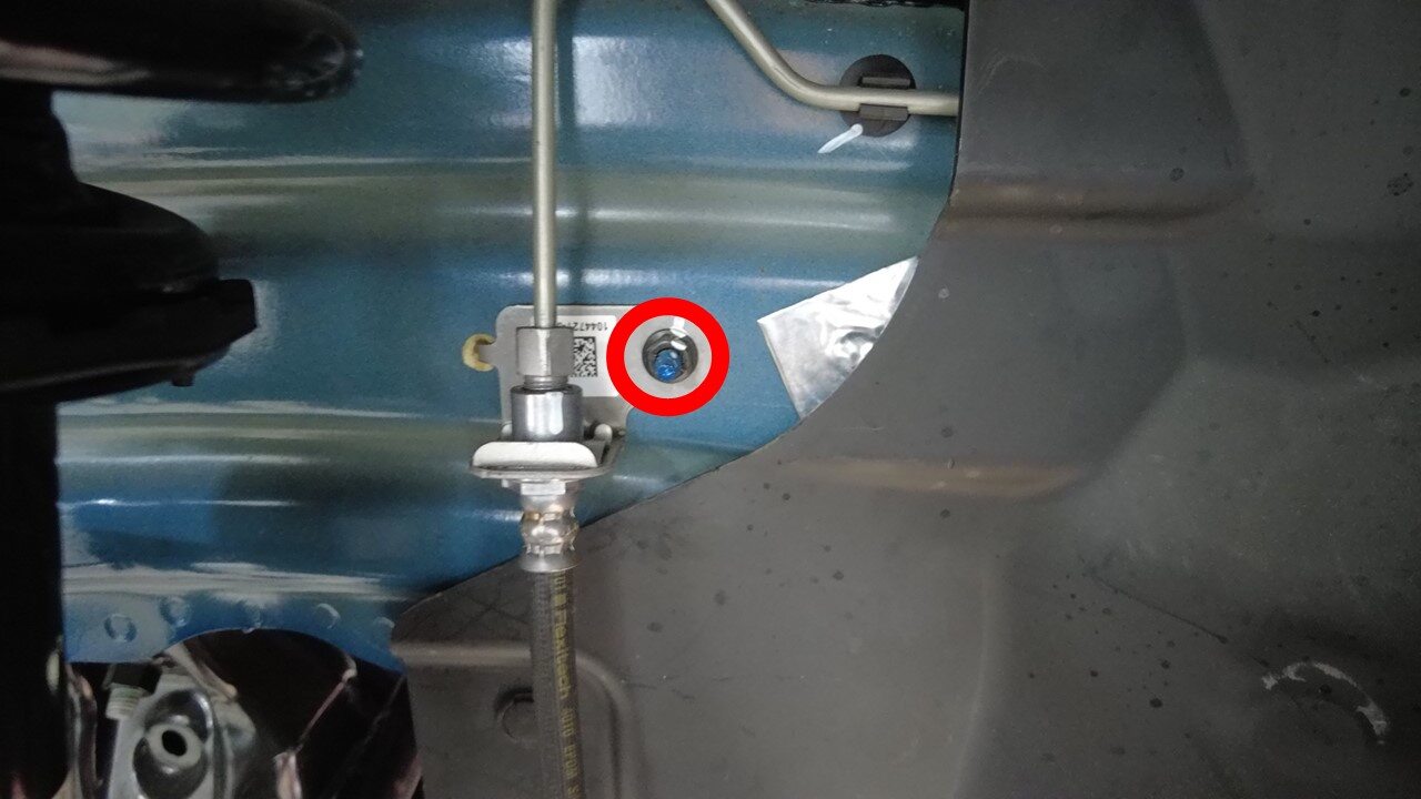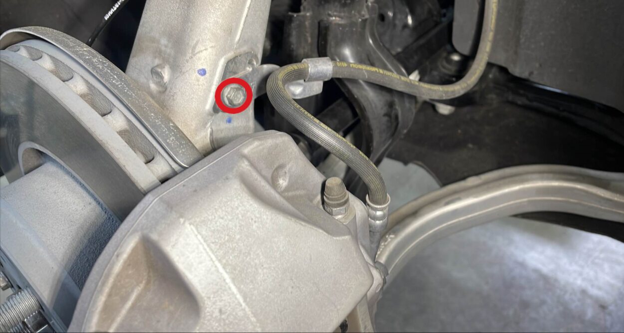 Bolt that attaches the LH/RH front brake hose bracket to the knuckle |