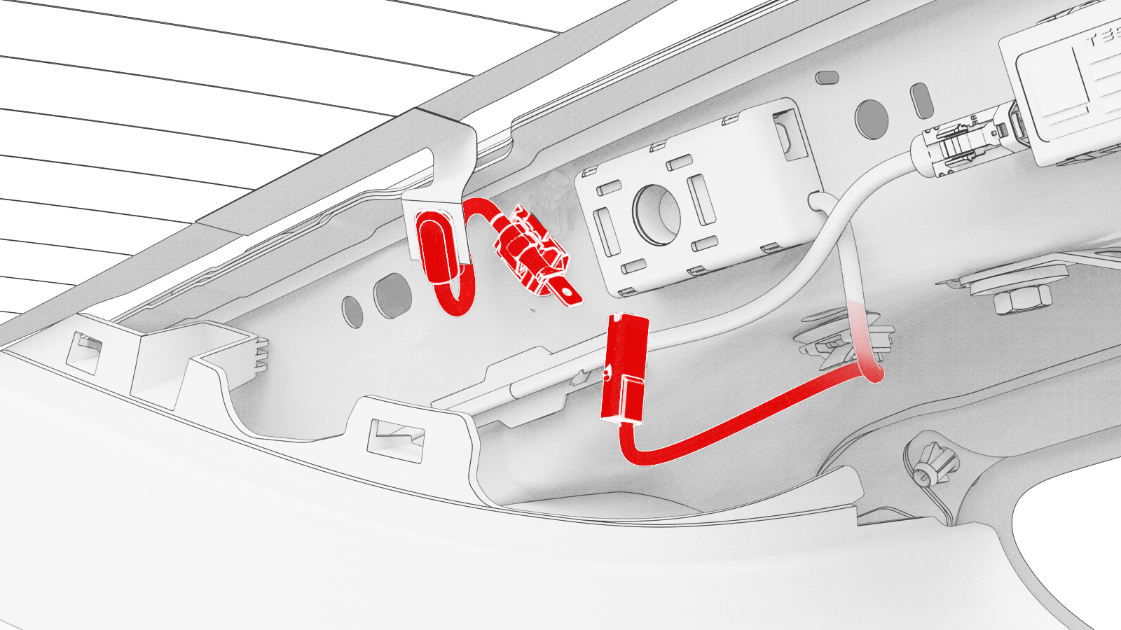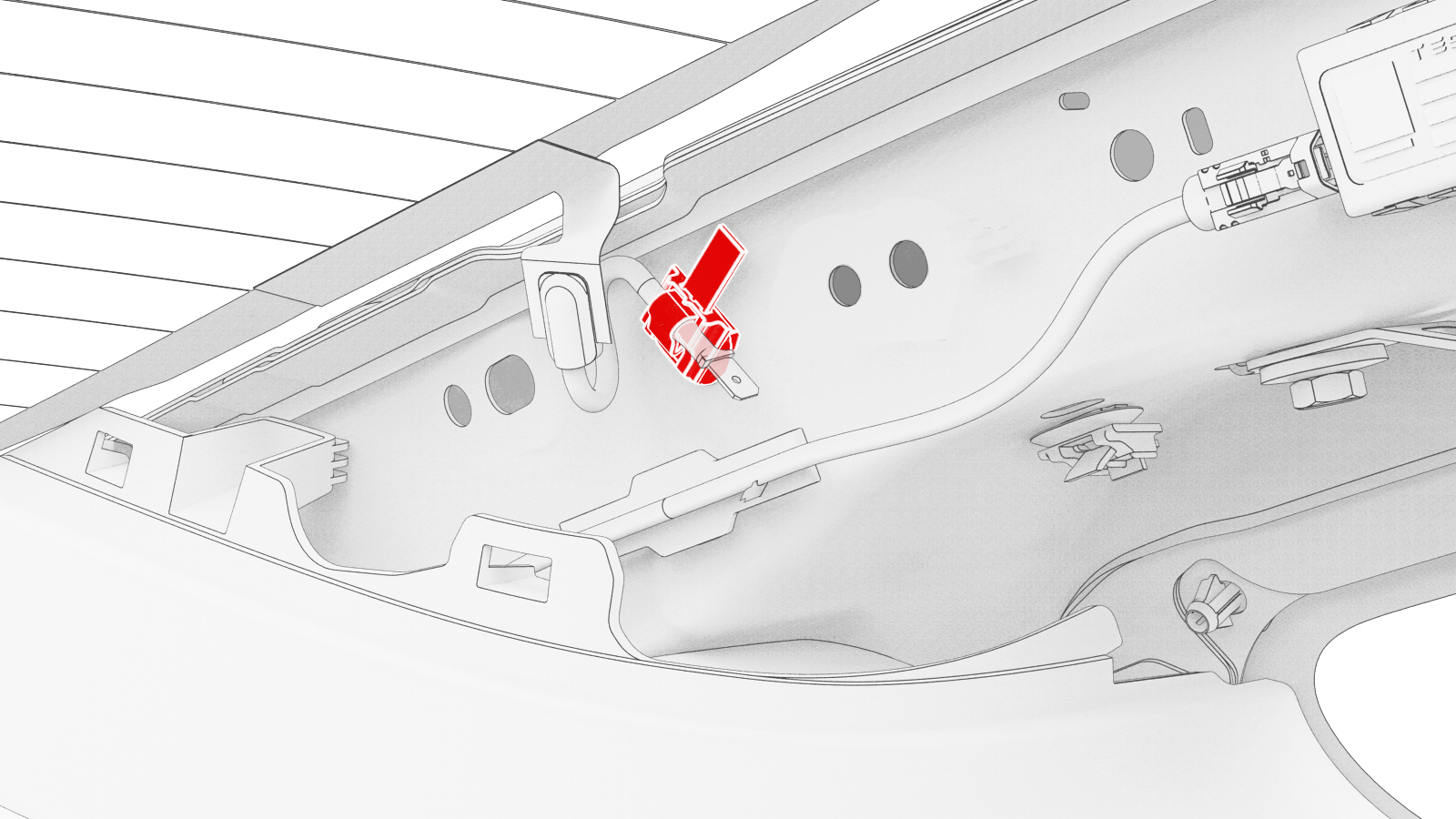 Fasten the clip that attaches the LH side backlight harness to the body.