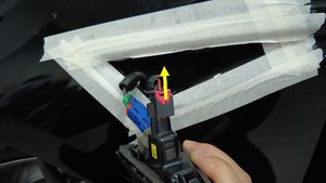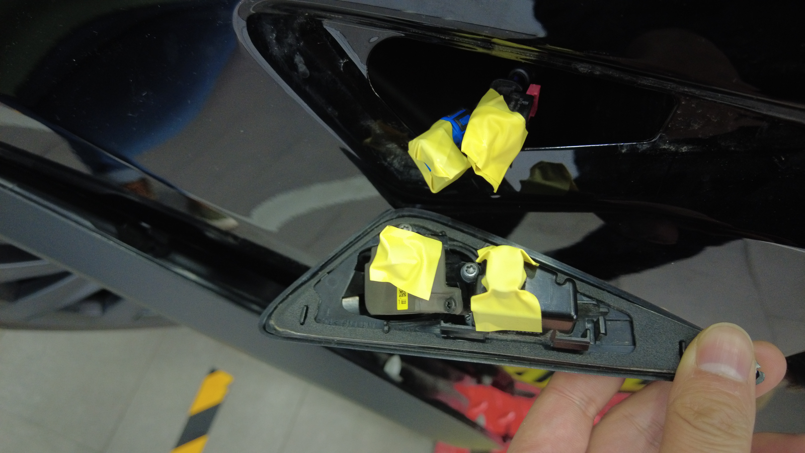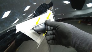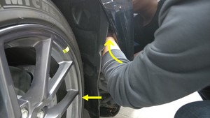 - Remove the protective tape from the LH fender around the LH front side repeater assembly.