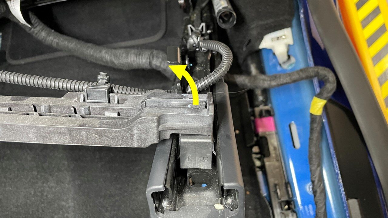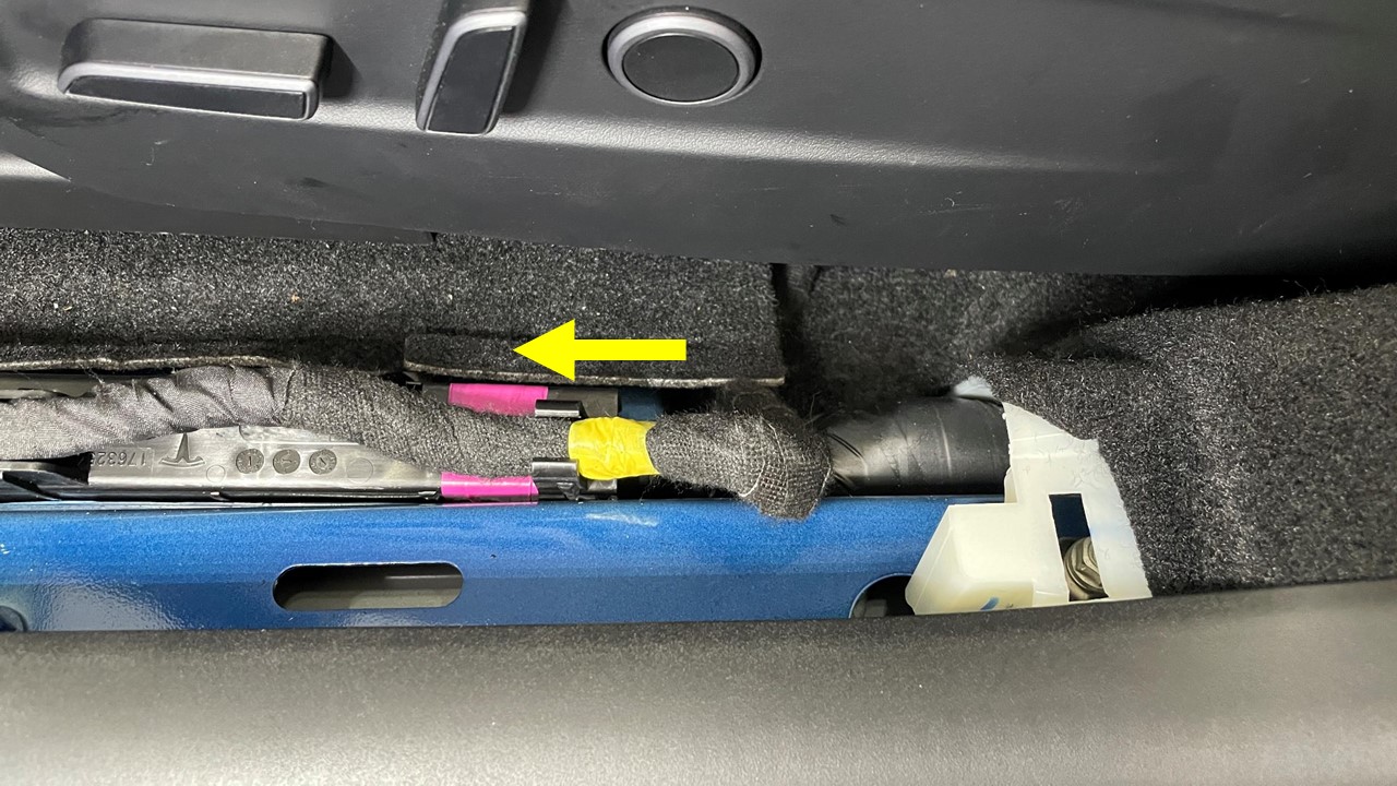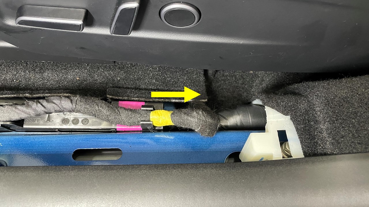 Pull the LH front seat harness from under the LH front cabin carpet.