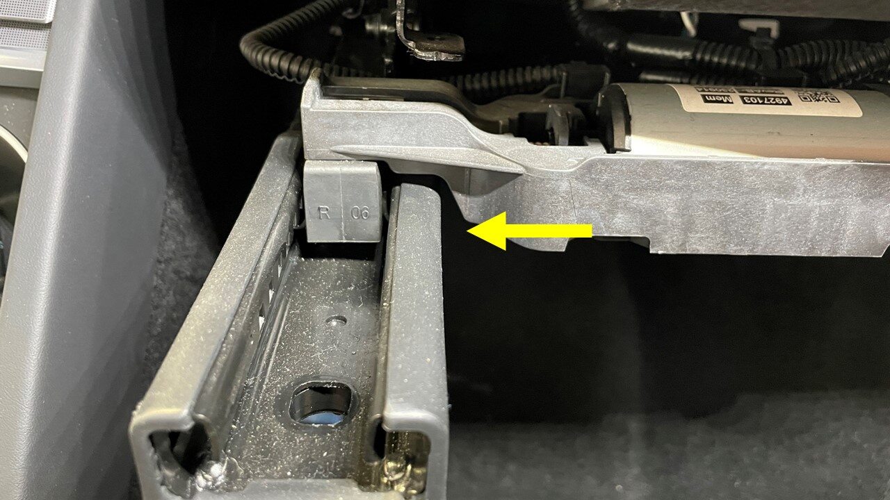 NotePry up on the track motor bridge tab and slide the outboard seat track away to release.