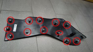 NoteUse a plastic trim tool to release the rearmost clips first and work toward the front of the vehicle. If the clips are too difficult to release, use a clip prytool.NoteReplace the clips if they are damaged.