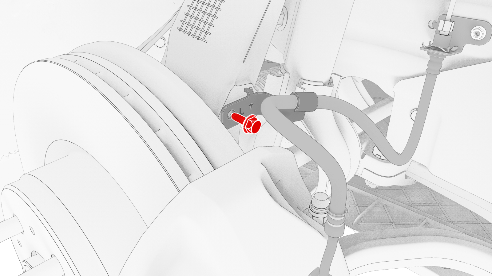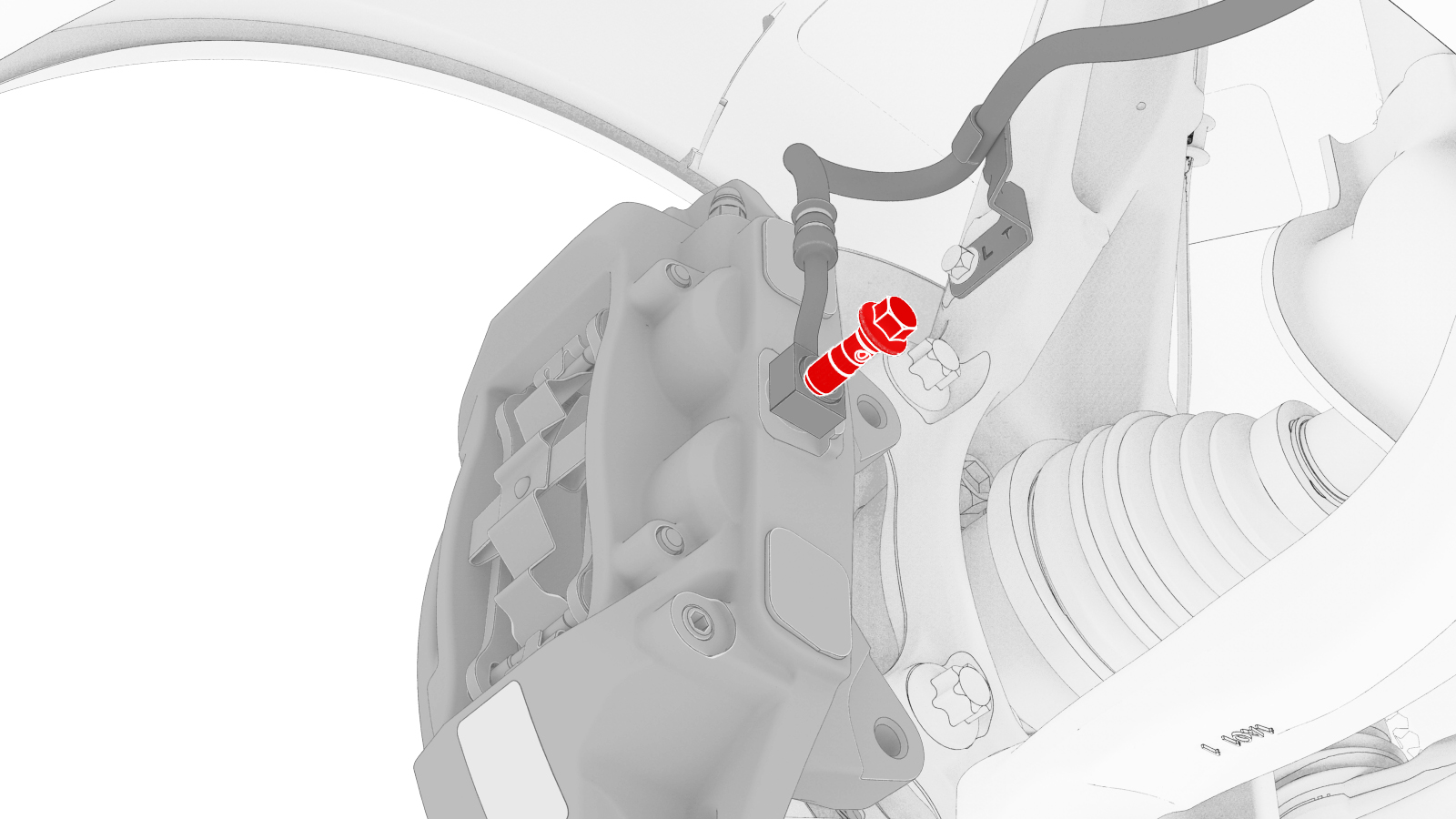 Bolt that attaches the flexible brake hose to the brake caliper |