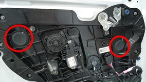 Bolts (x2) that attach the door glass to the regulator isolator clamps |