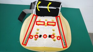 - Rotate the seat to gain access to the underside of the seat, and unhook the straps for the lower section of the seat back, and then move the seat back flap away from the underside of the seat.