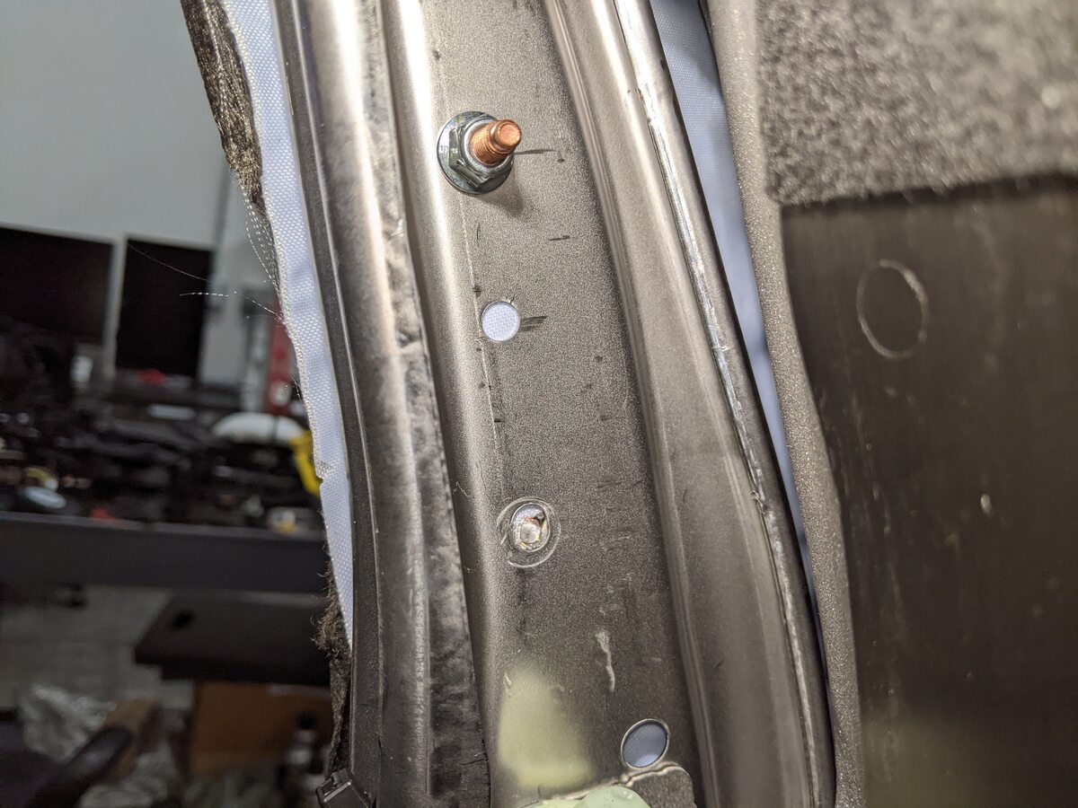 Break studs securing LH front seat side air bag to seatback frame