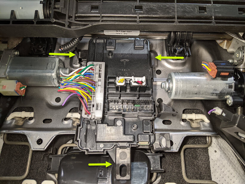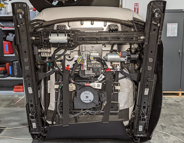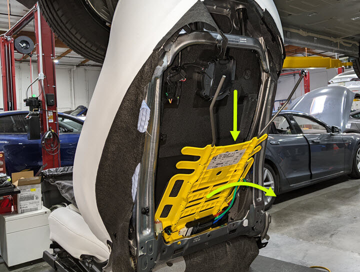 Model S and Model X front seat airbag removal shown. Procedures for Model 3 and Model Y