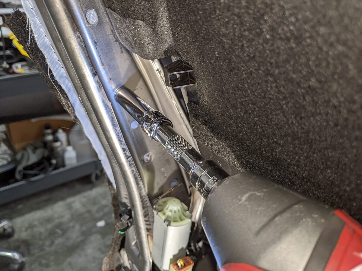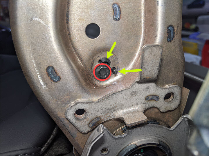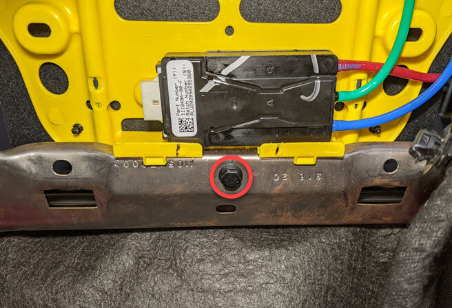 Remove bolt securing the power lumbar assembly to seat back frame