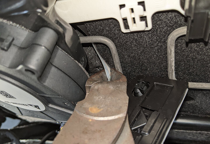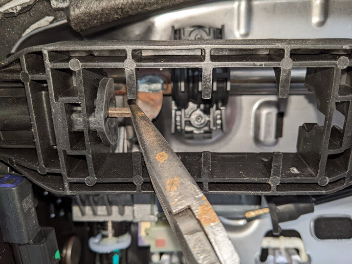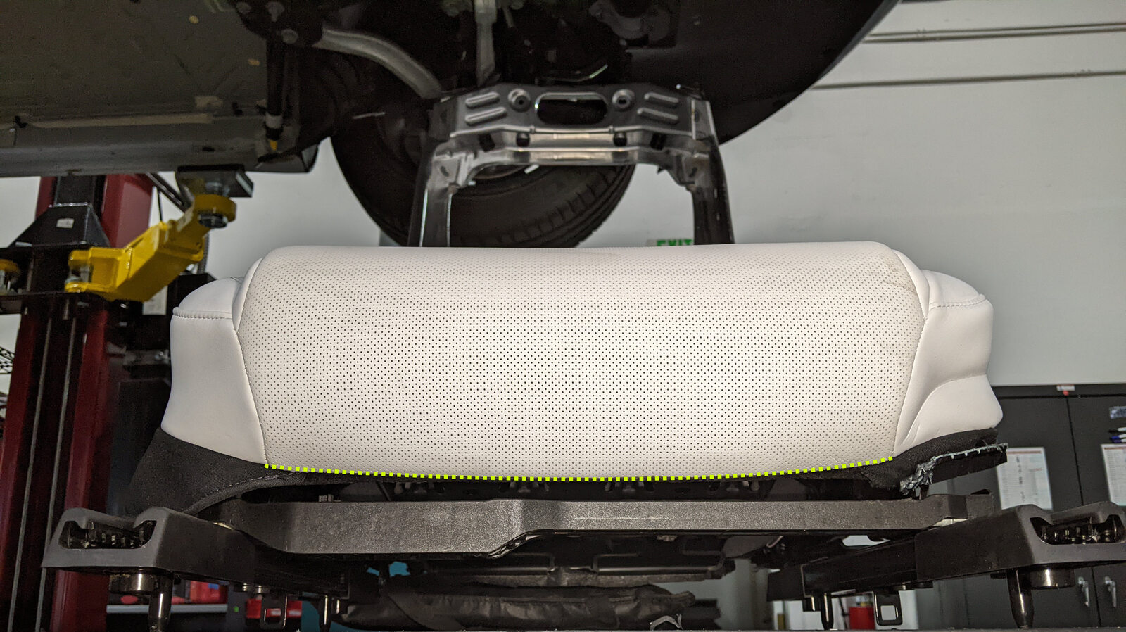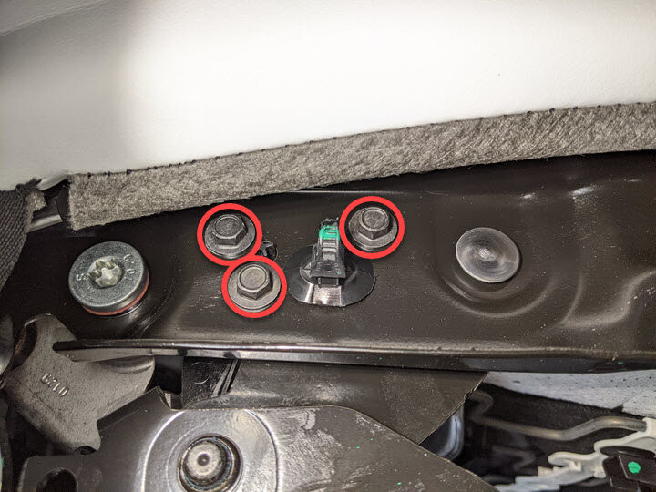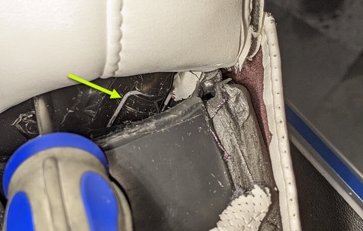 Cut lower kick panel trim from seat cushion suspension