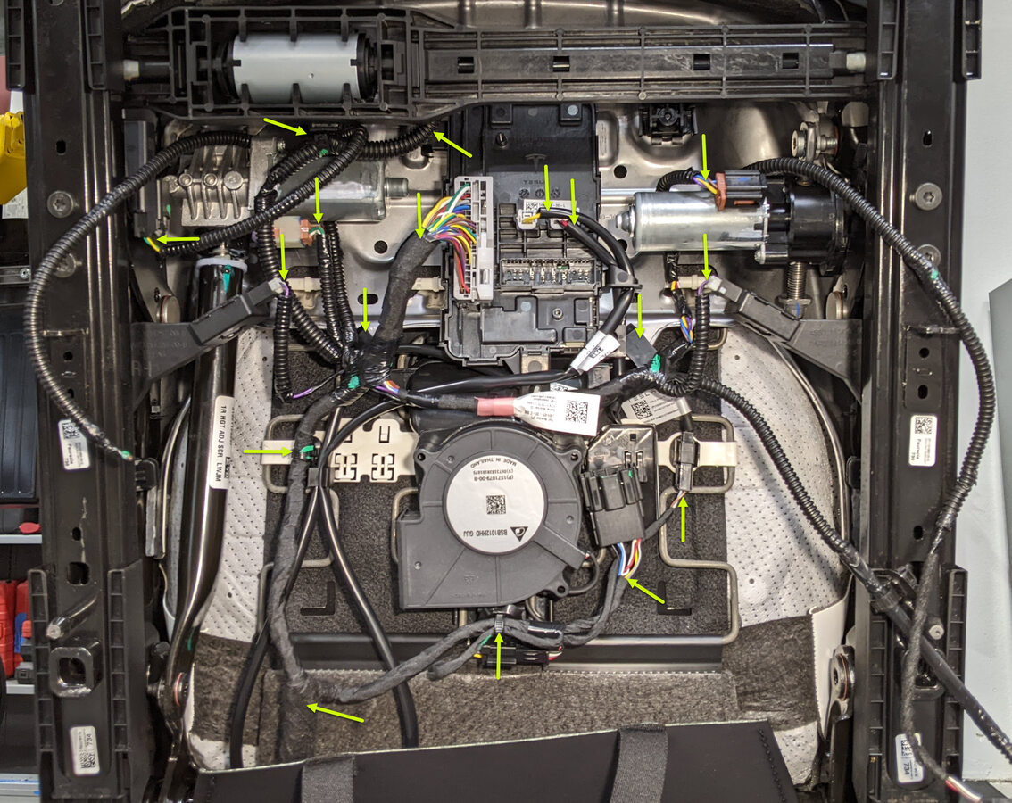 Note18x locations, Cut each harness branch from clip or connector to remove entire harness assembly from seat cushion frame