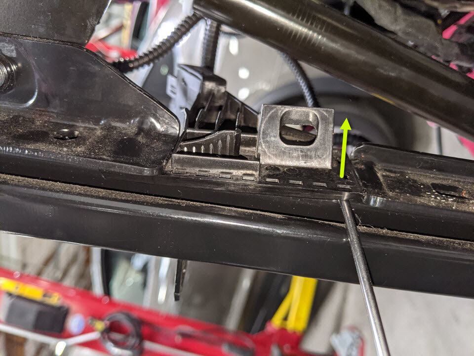 Note1x clip, Slide outer cover rearward to release clip from frame and lift up over pre-tensioner to remove